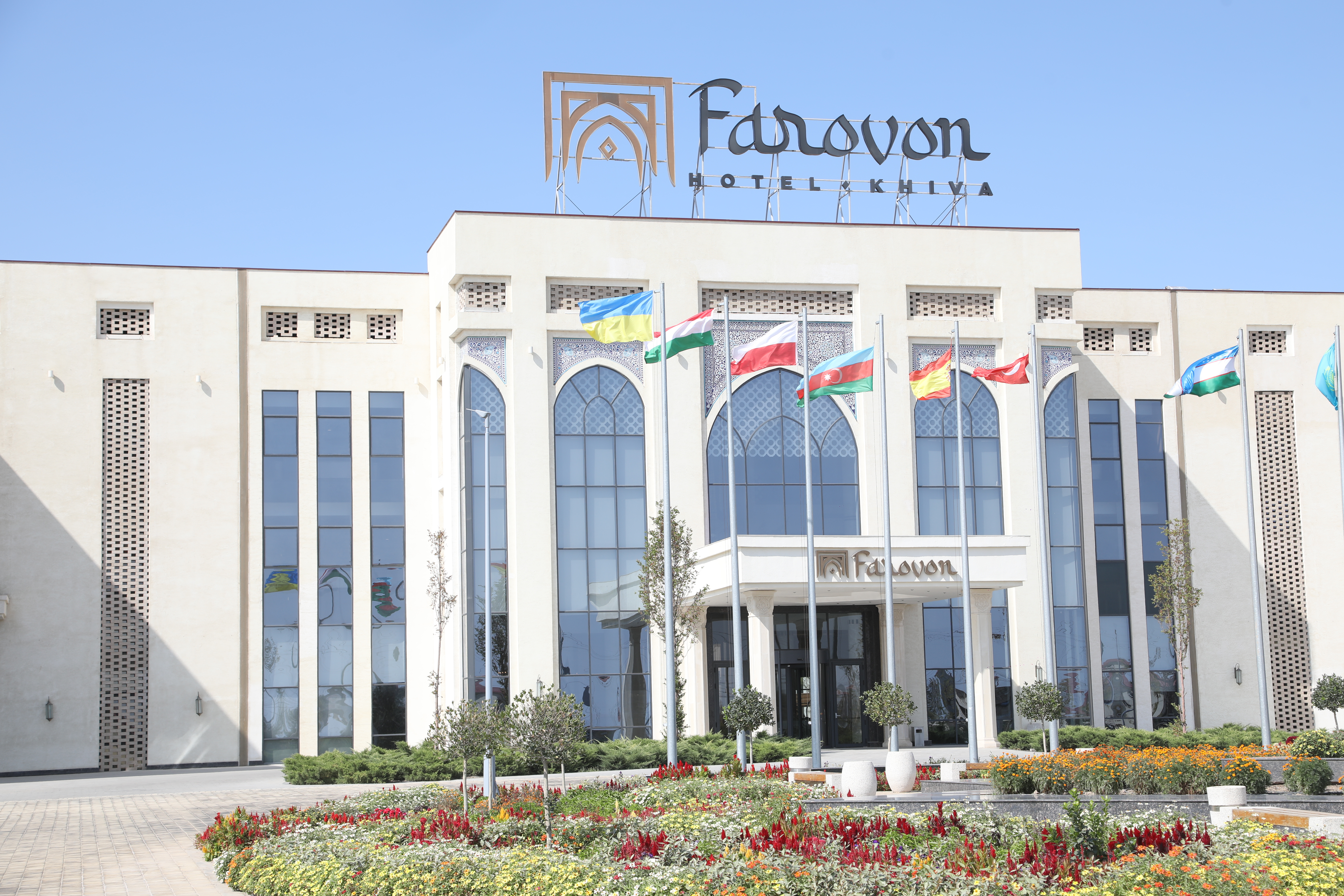 Гостиница «Farovon Khiva» одновременно может обслуживать 160 гостей. Сегодня эта гостиница стала уютным и приятным местом для отдыха туристов. Деятельность отеля налажена на основе европейских стандартов, видам и качеству услуг здесь уделяется особое внимание. Количество залов составляет 106, из них 6 предназначены для встречи глав государств и других высокопоставленных гостей. В распоряжении туристов бассейн, фитнес-зал, рестораны и десять конференц-залов для проведения различных мероприятий.