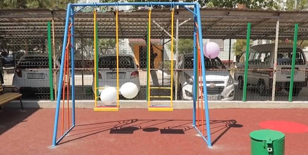 При финансовой поддержке АО «Узнацбанк» на пустующей территории построили детскую площадку. Площадка стала большим подарком для мальчиков и девочек. Теперь здесь создано достаточно условий для организации их содержательного досуга.