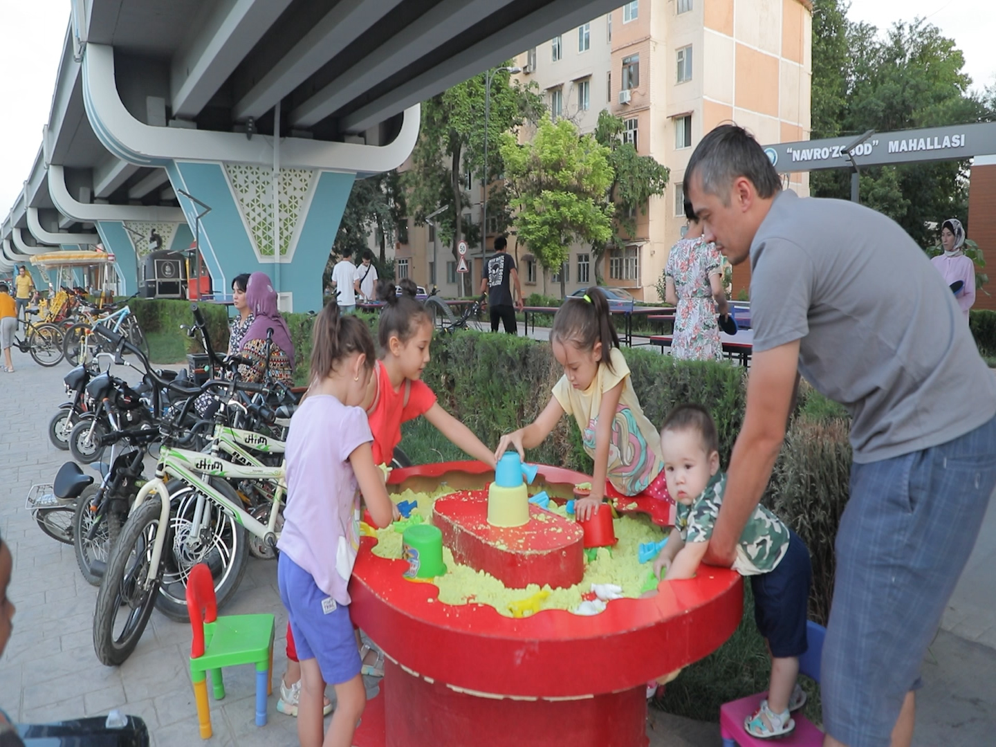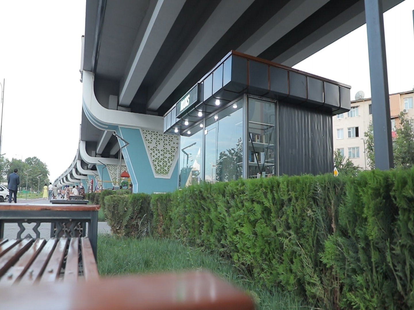На земельных участках под наземным метро по улице Ахангаранской выделено два лота (14 промежутков) 12 предпринимателям. Организованы две точки, торгующих фастфудом, одна - мороженым, а также два аттракциона и библиотека. Кроме того, здесь созданы все условия для детишек: баскетбольные и игровые площадки, велодорожки, книжные магазины...