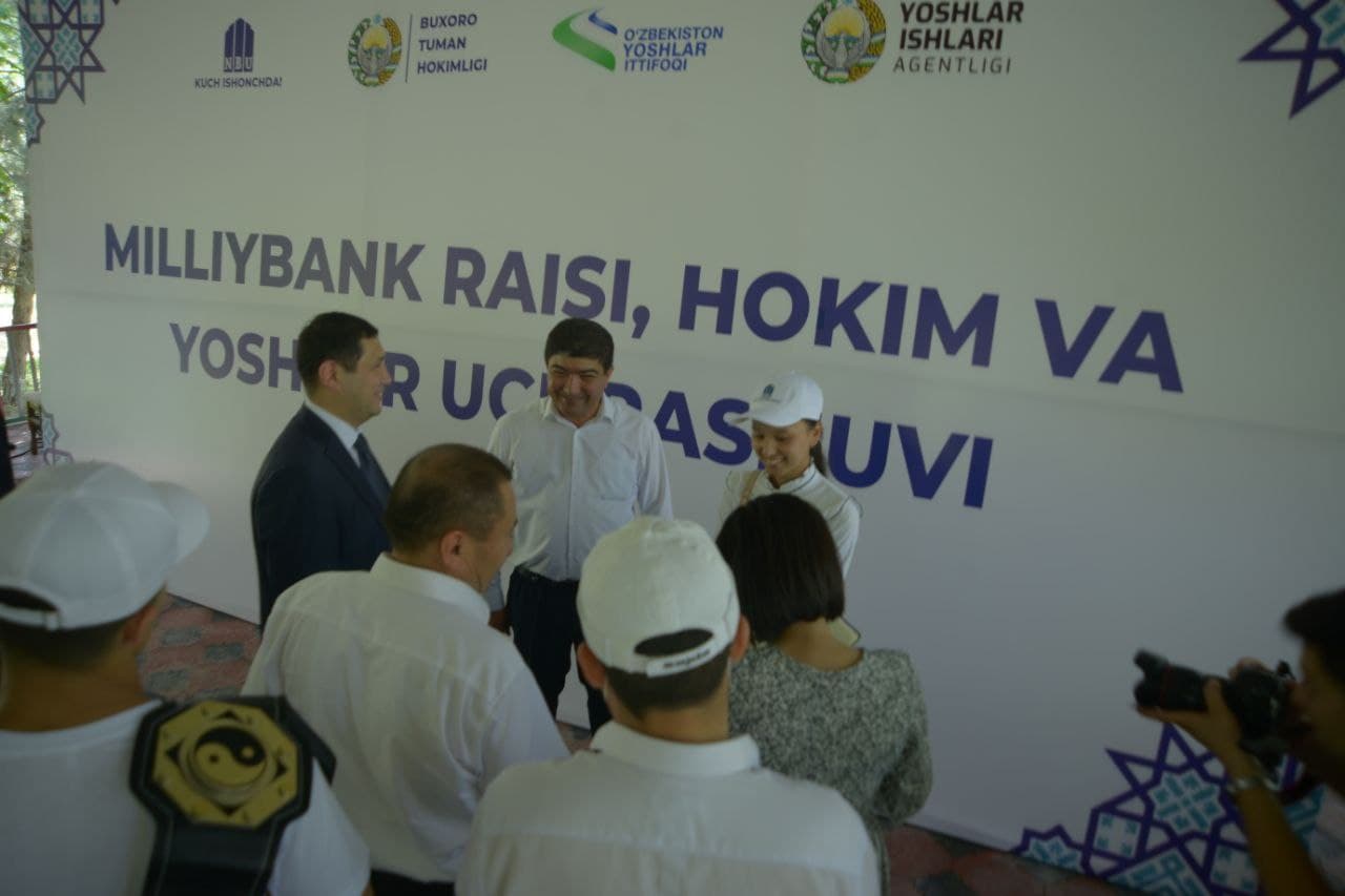 Uchrashuvda "O`zmilliybank" AJ boshqaruvi raisi Alishеr Mirsoatov, Buxoro tumani hokimi Xayrullo Jo‘rayev, Yoshlar ishlari agеntligi viloyati boshqarmasi boshlig‘i Ixtiyor Ziyodulloyev buxorolik yoshlar bilan dildan suhbatlashishdi.