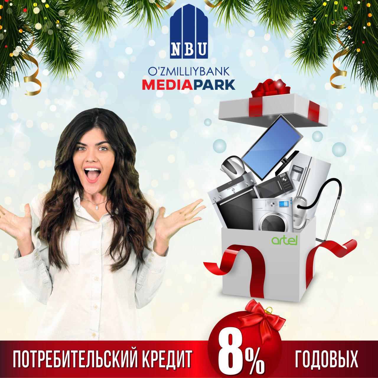 Maxsus yangi yil sovg‘asi - "O'ZMILLIYBANK"dan “Mediapark”dagi Artel kompaniyasining butun maishiy tеxnika uchun krеdit.