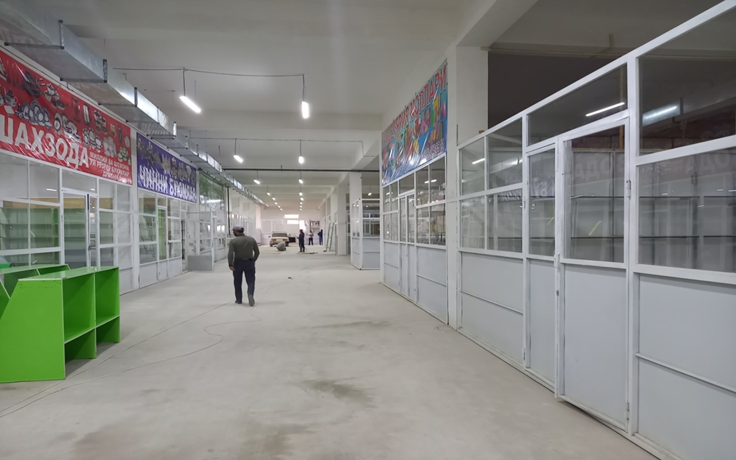 1 – qavatda binoning 3 tomonidan qo‘shimcha yengil konstruksiya asosida 32 ta do‘kon 1 140,00 kv.m, 4 (orqa) tomondan umumiy ovqatlanish nuqtasi sifatida foydalanish uchun 1 ta oshxona (560 kv.m) qurilgan bo‘lib, umumiy maydoni - 1 700 kv.m.
